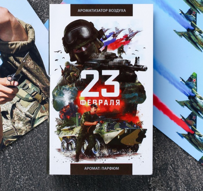 Ароматизатор в бутылке на открытке «23 февраля»