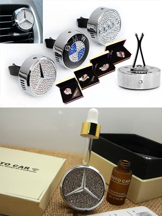 Ароматизатор сделан из металла, инкрустирован стразами. Крепится на решётку воздуховода в автомобиль.