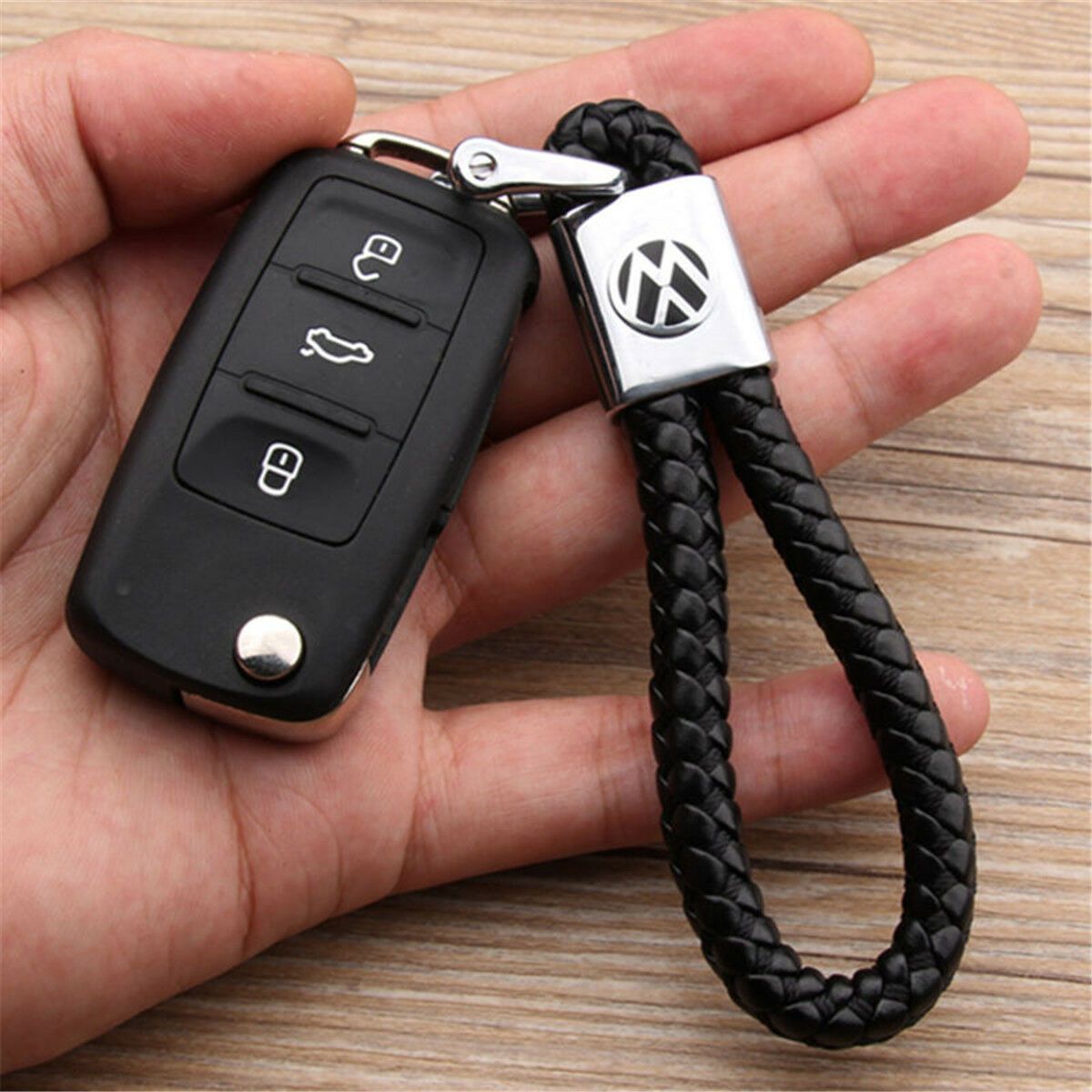 БРЕЛОК С КОЖАНЫМ ПЛЕТЁНЫМ РЕМЕШКОМ С ЛОГОТИПОМ АВТО ЧЁРНЫЙ
