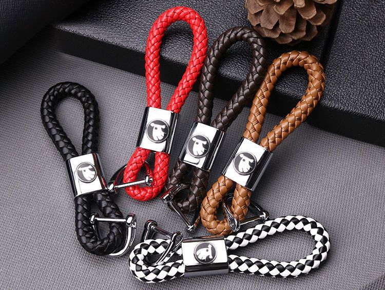 БРЕЛОК С КОЖАНЫМ ПЛЕТЁНЫМ РЕМЕШКОМ С ЛОГОТИПОМ АВТО