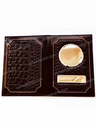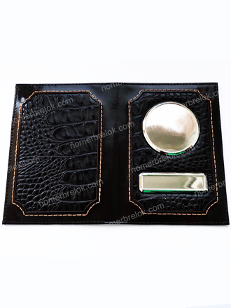 - Кожаная обложка «КАЙМАН» на автодокументы с металлическими вставками «чёрный никель, серебро и золото».