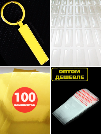 Комплект 100 шт. Заготовка с бортиками «ПРЕМИУМ» брелок гос. номер авто. В сборе. GOLD. (10,9 х 51,7 мм.)
