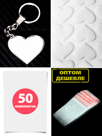 Комплект 50 шт. Заготовка с бортиками, брелок «СЕРДЦЕ». В сборе. Усиленное крепление!