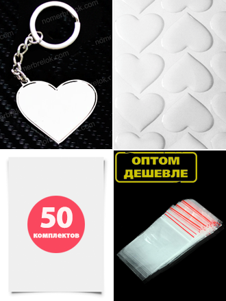 Комплект 50 шт. Заготовки с бортиками, брелок «СЕРДЦЕ». В сборе.