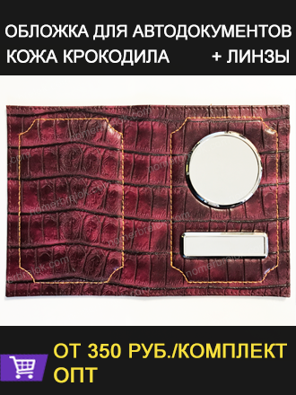 «КРОКОДИЛ» КОЖАНАЯ ОБЛОЖКА ДЛЯ АВТОДОКУМЕНТОВ В КОМПЛЕКТЕ С ЛИНЗАМИ. ЦВЕТ: БОРДОВЫЙ.
