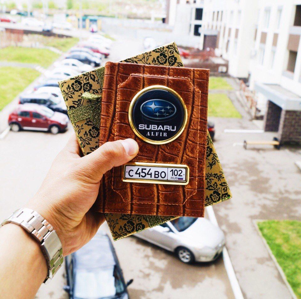 Обложки сделаны из натуральной кожи. Заготовки обложек имеют специальные металлические вставки с бортиками, которые не темнеют и не облезают. Благодаря этим бортикам изображение защищено от механических воздействий, а полиуретановая линза защищает картинку от выгорания и стирания.Изготовление кожаной обложки занимает 5 минут и не требует специального оборудования. Макет для обложки распечатывается на цветном струйном принтере на самоклеющейся фотобумаге, далее к распечатанному изображению приклеивается линза, вся эта «конструкция» вырезается ножницами и убрав защитный слой с самоклейки, вклеивается в металлическую вставку с бортиками. Эксклюзивная обложка для авто документов с гос. номером авто и логотипом готова!