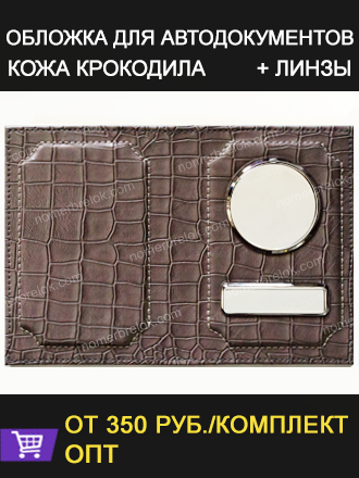 - Кожаная обложка «КРОКОДИЛ» на автодокументы с металлическими вставками «под серебро и золото».