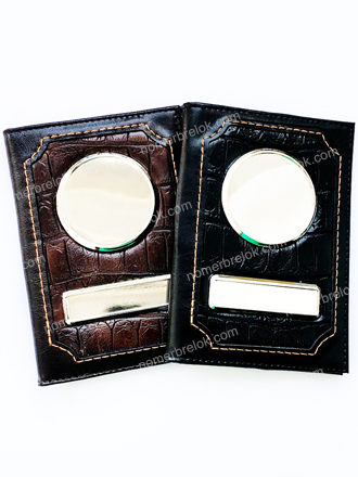 Изготовление кожаной обложки занимает 5 минут и не требует специального оборудования. Макет для обложки распечатывается на цветном струйном принтере на самоклеющейся фотобумаге, далее к распечатанному изображению приклеивается линза, вся эта «конструкция» вырезается ножницами и убрав защитный слой с самоклейки, вклеивается в металлическую вставку с бортиками. Эксклюзивная обложка для авто документов с гос. номером авто и логотипом готова!