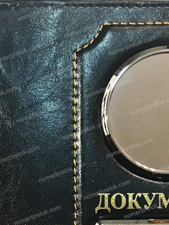Обложки для документов сделаны из натуральной кожи. Заготовки обложек имеют специальные металлические вставки с бортиками, которые не темнеют и не облезают. Благодаря этим бортикам изображение защищено от механических воздействий, а полиуретановая линза защищает изображение от выгорания и стирания.