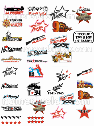 Способ доставки (курьером, почтой, транспортной компанией или самовывоз) выбирается при оформлении заказа. Доставка, по акции, осуществляется бесплатно.Наклейки на автомобиль с тематикой Дня Победы.