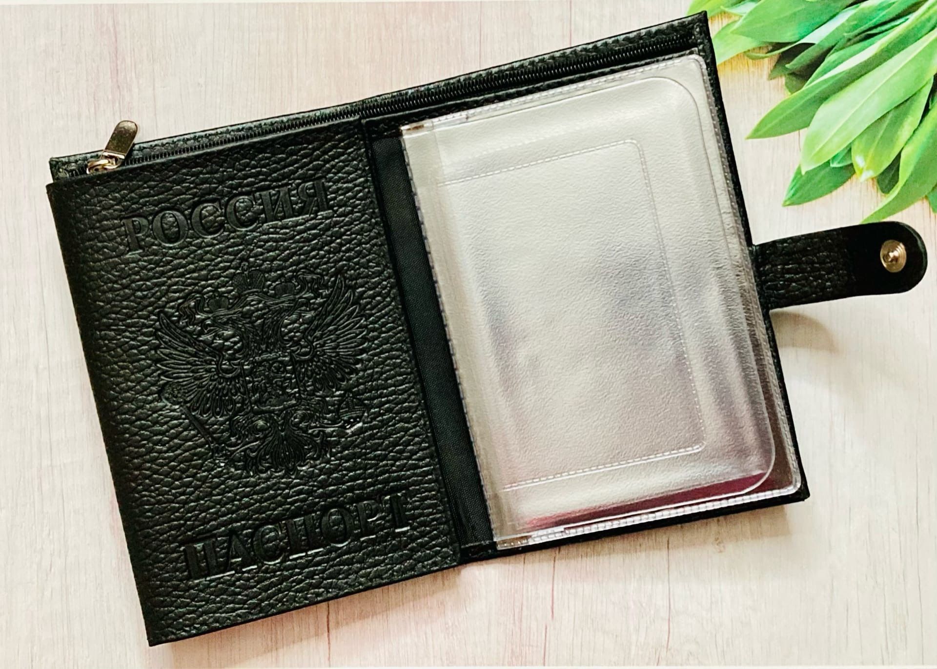 5В1! Обложка для авто документов, плюс отдел для паспорта, кошелёк на молнии, карман для купюр, отделы для карт и визиток, на заклёпке