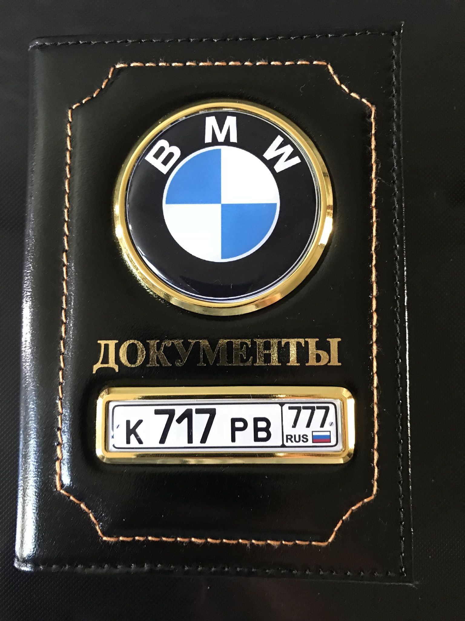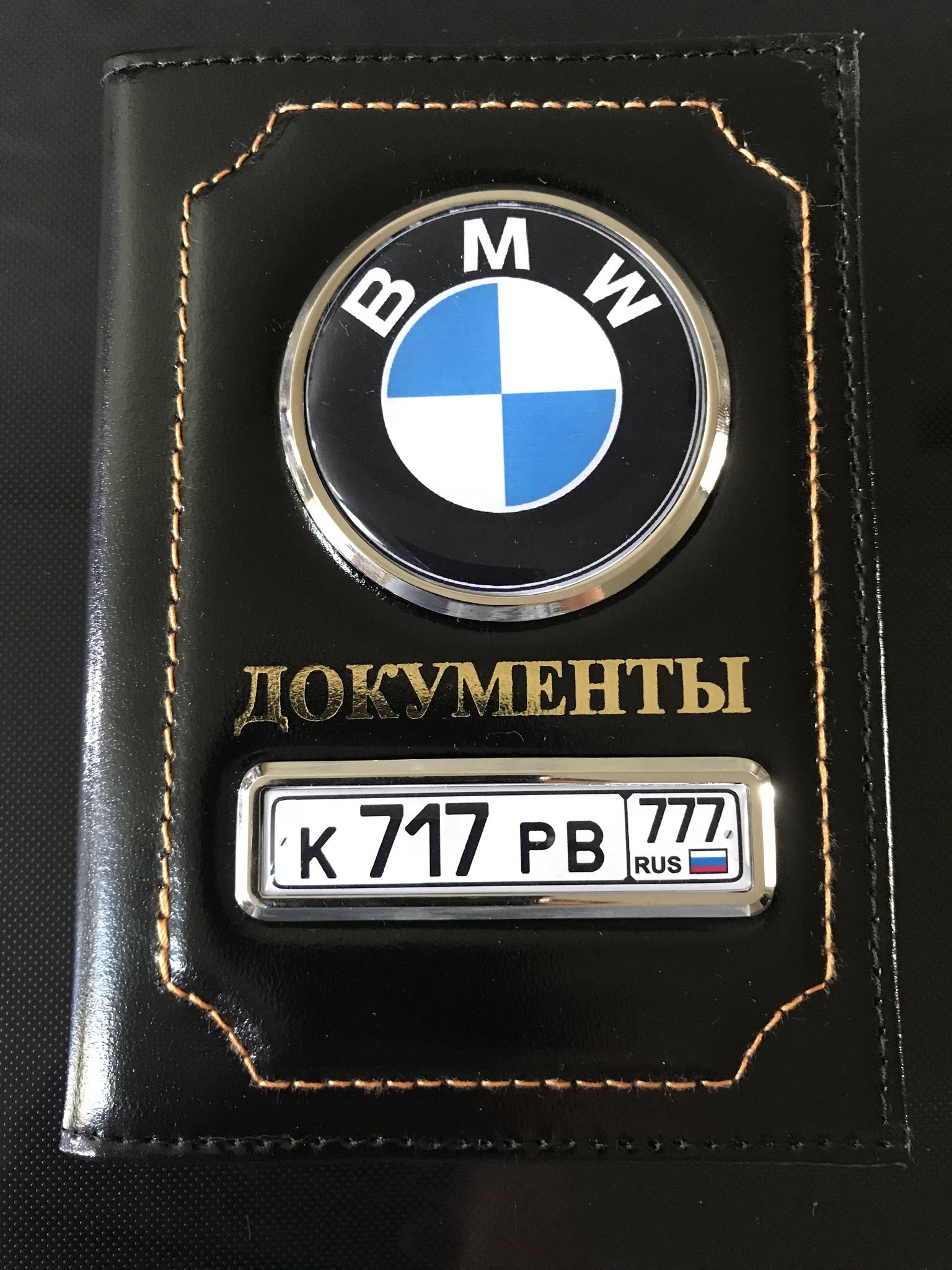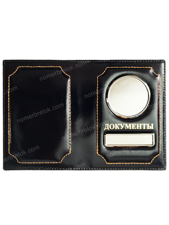ГЛЯНЕЦ. ОБЛОЖКА ИЗ КОЖИ ДЛЯ АВТОДОКУМЕНТОВ В КОМПЛЕКТЕ С ЛИНЗАМИ. ЦВЕТ: ЧЁРНЫЙ (вставка золото)