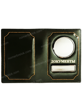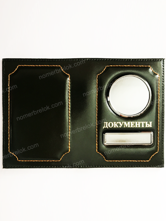 ОБЛОЖКА ИЗ КОЖИ ДЛЯ АВТОДОКУМЕНТОВ В КОМПЛЕКТЕ С ЛИНЗАМИ. ЦВЕТ: ТЁМНО-ЗЕЛЁНЫЙ. Вставки: ЗОЛОТО