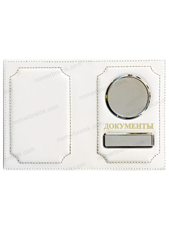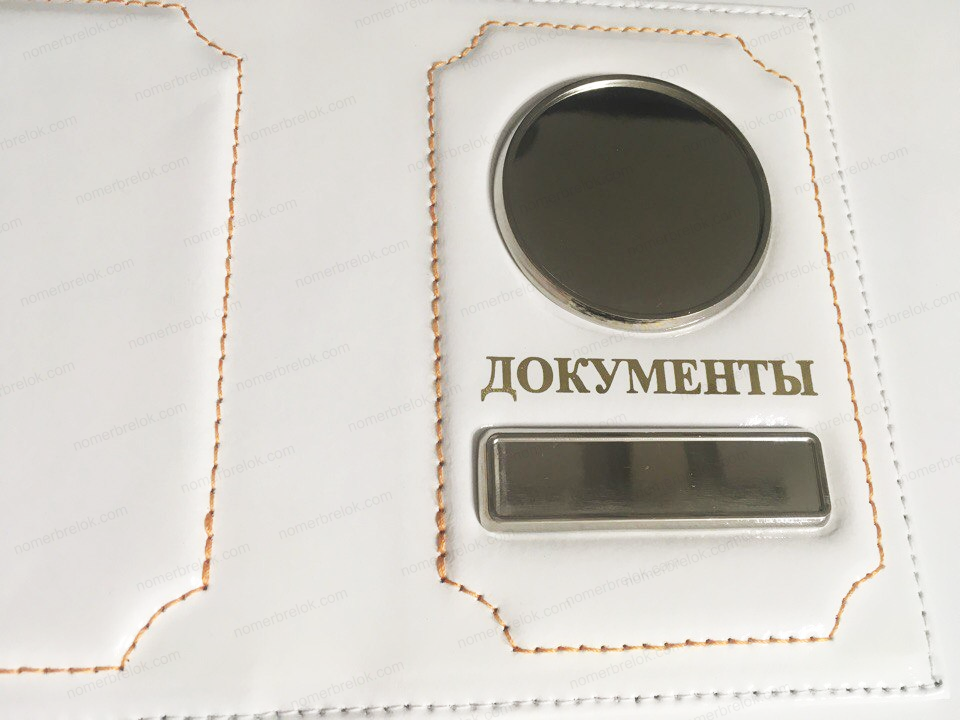 ОБЛОЖКА ИЗ КОЖИ ДЛЯ АВТОДОКУМЕНТОВ В КОМПЛЕКТЕ С ЛИНЗАМИ. ЦВЕТ: БЕЛЫЙ. ВСТАВКИ: СЕРЕБРО