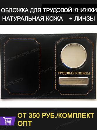 ОБЛОЖКА ИЗ КОЖИ ДЛЯ ТРУДОВОЙ КНИЖКИ В КОМПЛЕКТЕ С ЛИНЗАМИ. ЦВЕТ: ЧЁРНЫЙ.