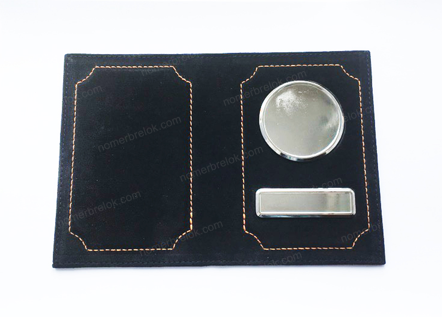 Обложки для документов сделаны из натуральной замши. Заготовки обложек имеют специальные металлические вставки с бортиками, которые не темнеют и не облезают. Благодаря этим бортикам изображение защищено от механических воздействий, а полиуретановая линза защищает изображение от выгорания и стирания.