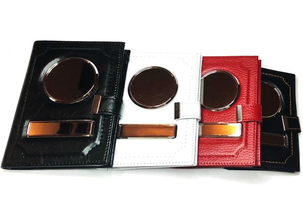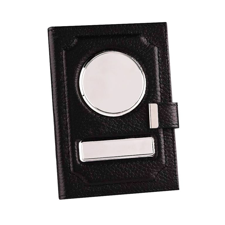 Обложка для автодокументов и/или паспорта выполнена из кожи с тиснением, имеет металлические вставки.