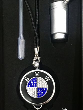 В комплекте идёт бутылочка с ароматизатором, из которой можно снова и снова заправлять подвеску. Можно менять ароматы, можно использовать аромамасла или любимые духи.
