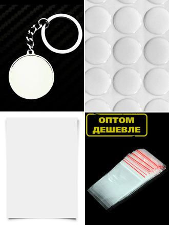 3. Линзы объёмные, прозрачные, на самоклеющейся основе для 1 брелока (2 линзы).