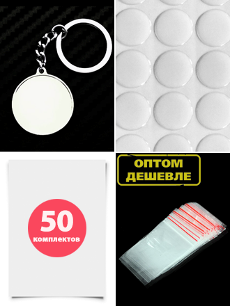 В комплект входят: 1. Заготовки c бортиками, под брелок в форме круга/медальона: 50 шт.