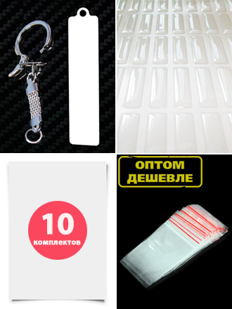 В пробный комплект для изготовления 10-ти брелоков без бортиков, входят: