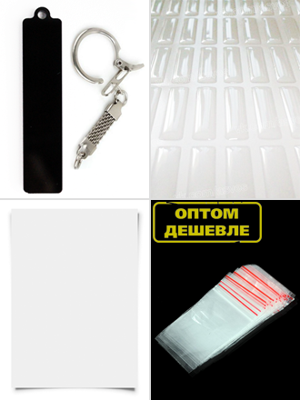 1. Заготовка для изготовления брелока в виде гос. номера авто. Материал: чёрный акрил. 2. Стандартное крепление, карабин с кольчужкой. 3. Качественные линзы из полиуретановой смолы (производство Италия), не трескаются и не желтеют со временем. 4. Самоклейка белая, для печати макетов. 5. Упаковочный пакетик для готового брелока, с застёжкой. 6. Пошаговые инструкции по изготовлению брелока. 7. Видео-уроки, обучение. 8. Бонус, секретный подарок в посылке!
