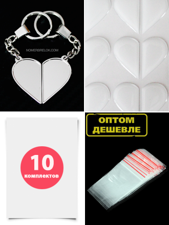 Комплект 10 шт. Заготовки с бортиками, брелок «ПОЛОВИНКИ СЕРДЦА». В сборе.
